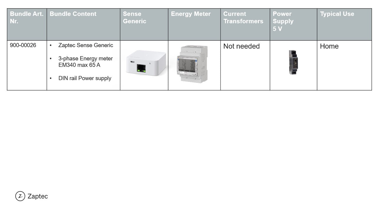 - 1 module Zaptec Sense, à fixer par autocollant double face à proximité du point de livraison du bâtiment